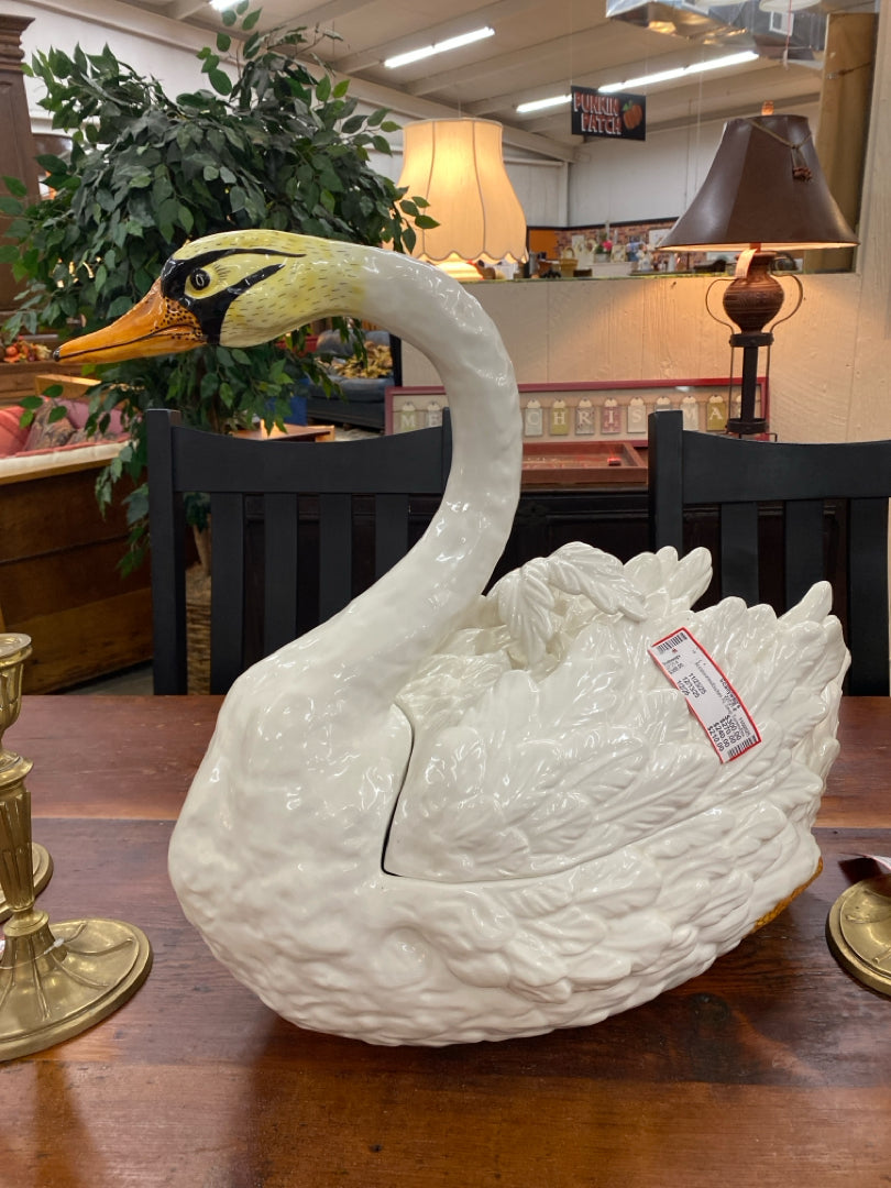 Accessories/Dishes XL Soup Tureen/Box White Ceramic Swan