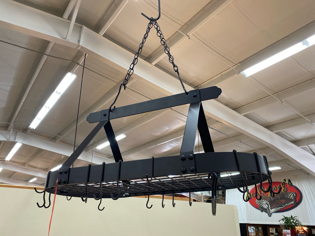 Accessories 19x36" Oval Iron Hanging Pot Rack with Grid & Hooks