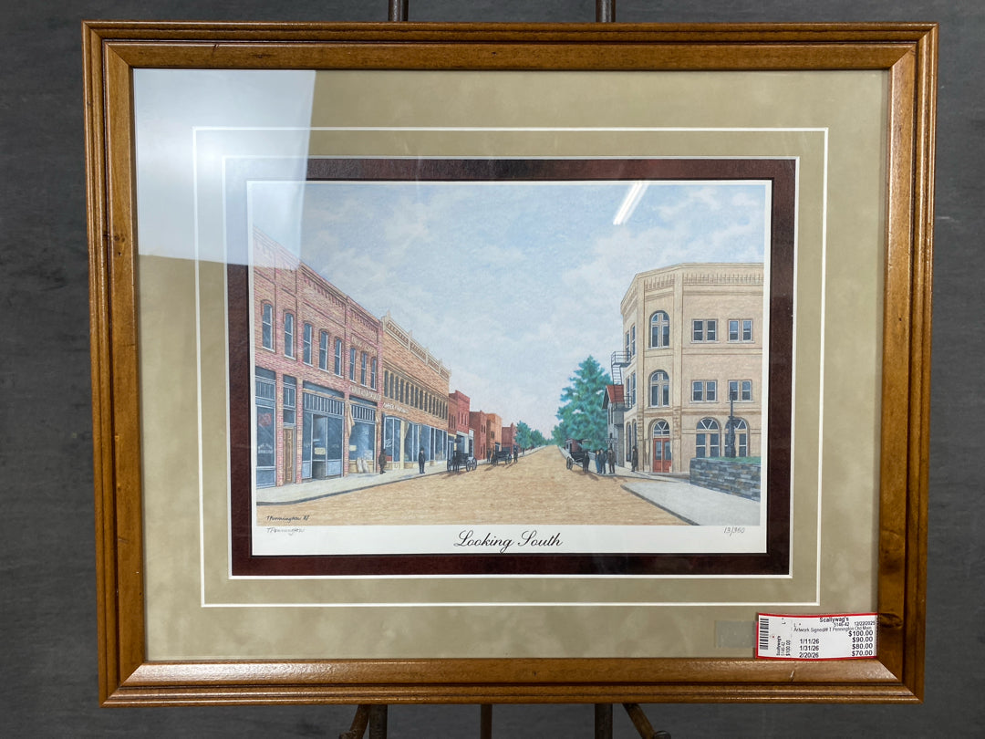 Artwork Signed & Numbered T.Pennington Old Main Street "Looking South" In Taupe Mat & Dark Wood Frame - Similar Piece Available