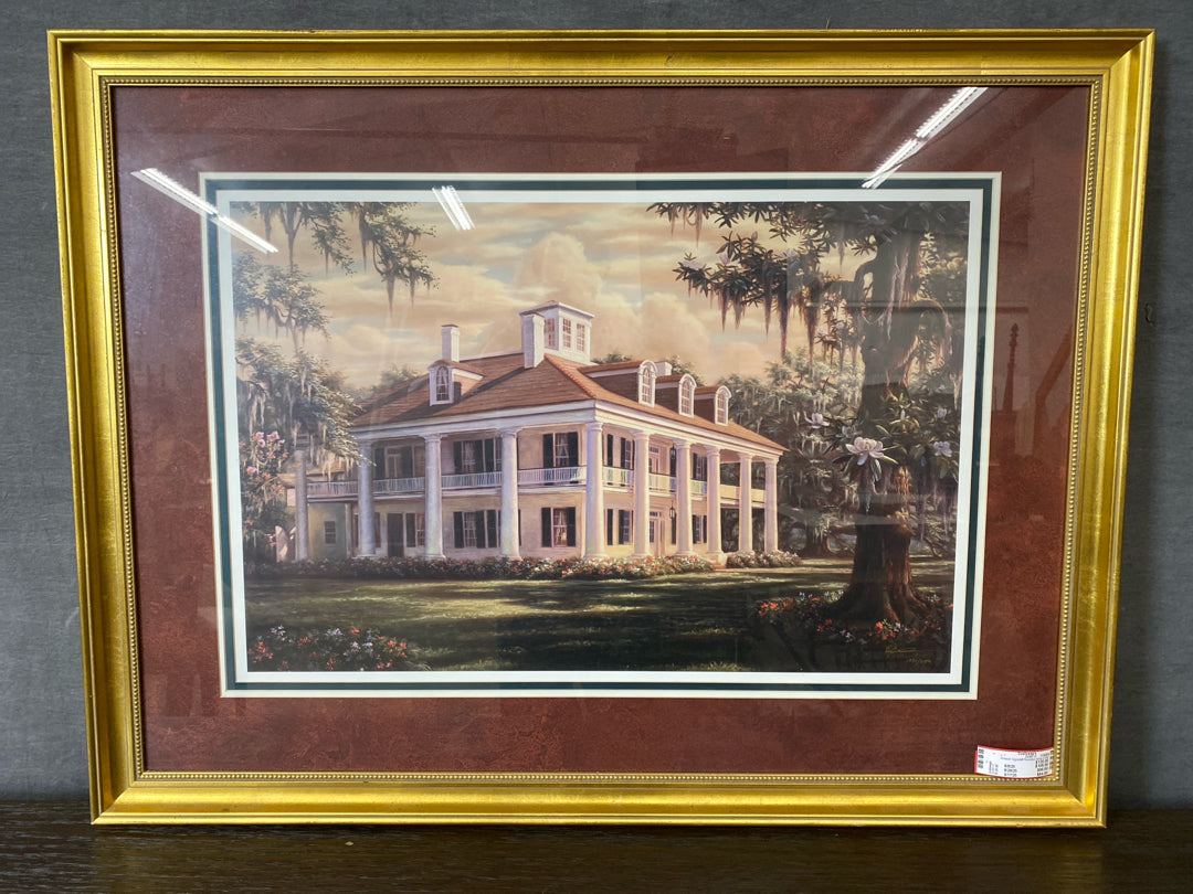 Artwork Signed & Numbered Plantation Home In Red Mat & Gold Frame