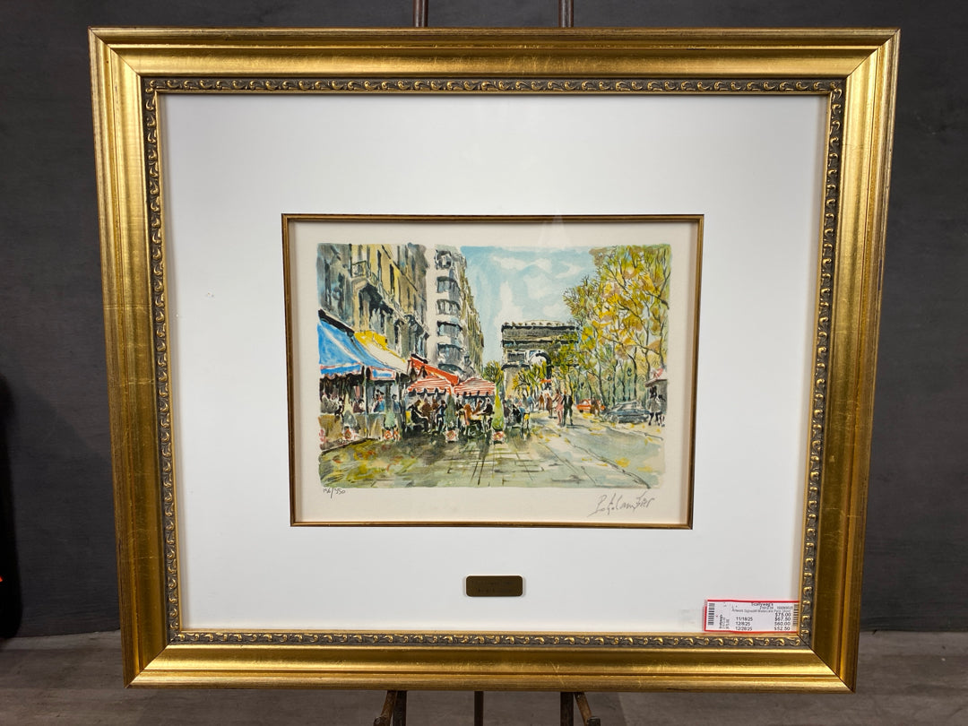 Artwork Signed & Numbered Watercolor Paris Street Scene Near Monument In White Mat & Gold Frame - 2 Similar Available