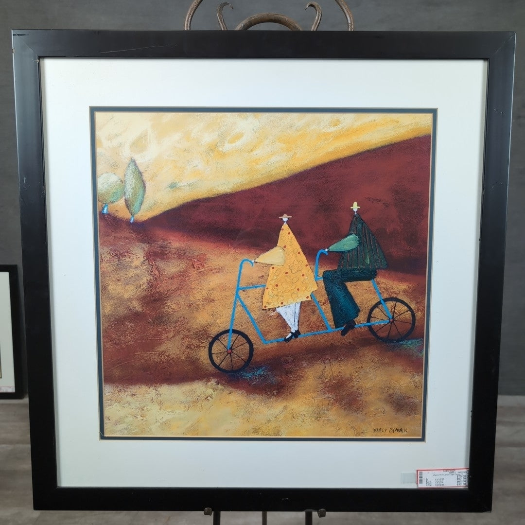 Artwork Print Cartoon Style Couple On Tandem Bike In White Mat & Square Black Frame "Rolling Home II" By Dynan