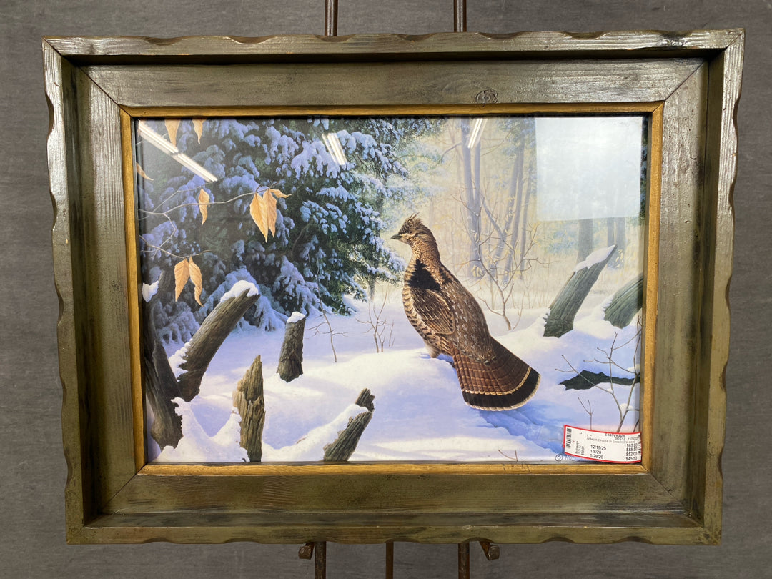 Artwork Grouse In Snow In Distressed Gray Wood Frame
