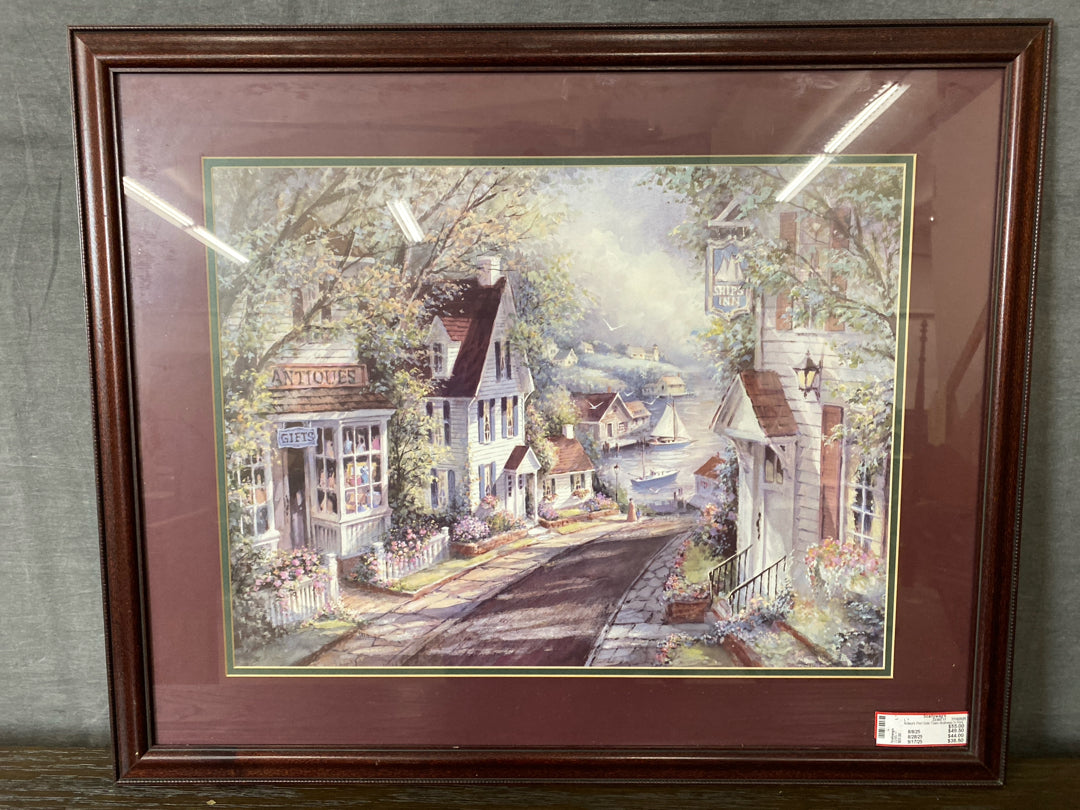 Artwork Port Side Town Walkway In Red Mat & Dark Wood Frame