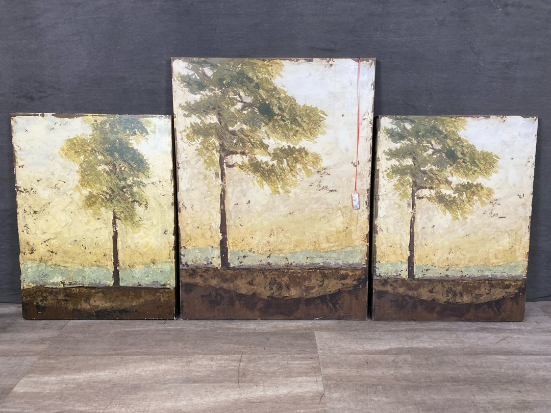 Artwork 3 Piece Triptych Large Canvas Transfer Impressionist Trees on Tan Background Unframed