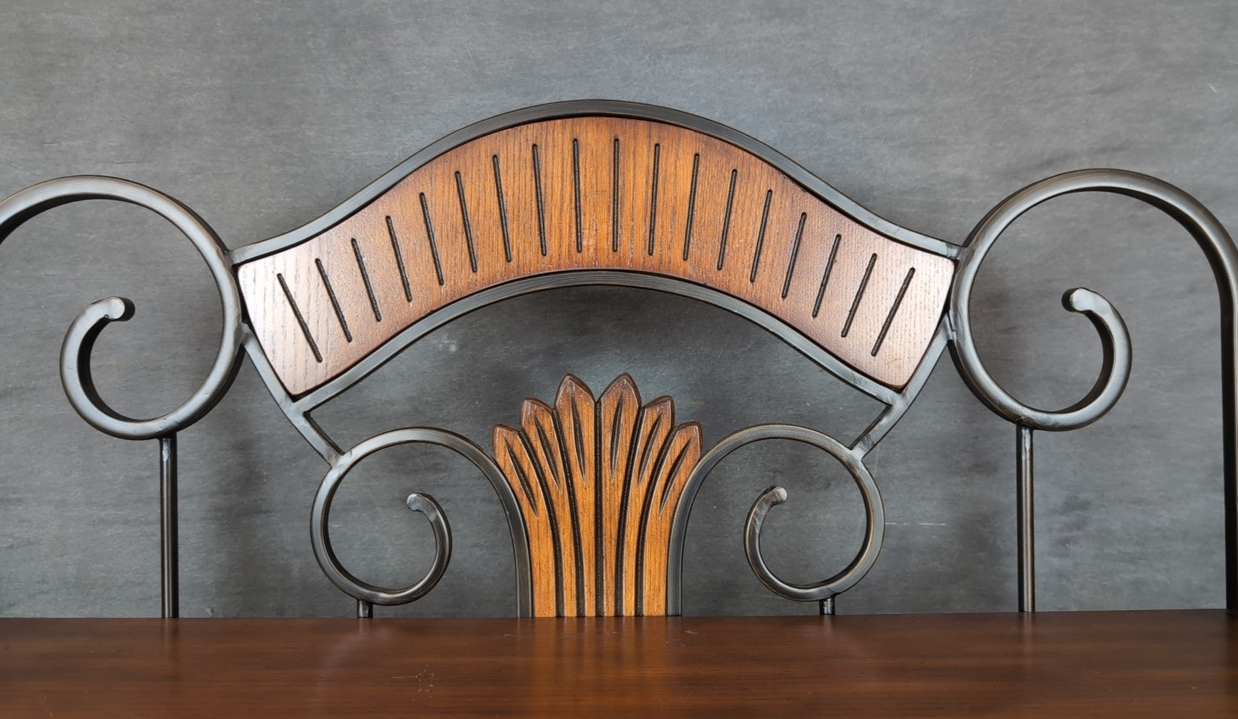 Bakers Rack 44x21x80" 4 Tier Medium Wood & Dark Metal With Scroll & Carved Accents