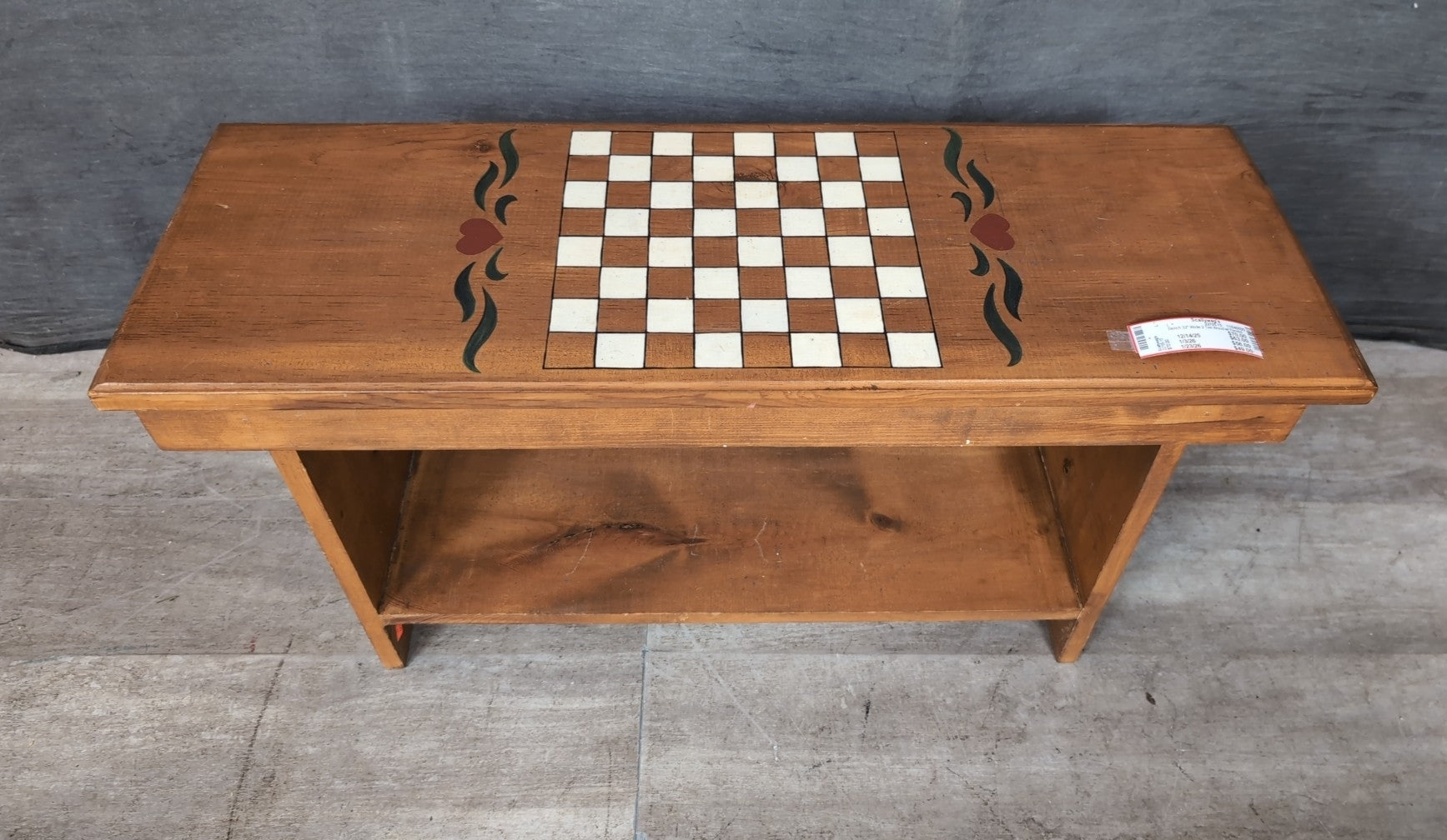 Bench 32" Wide 2 Tier Wood WIth Painted White Checkerboard & Hearts Top