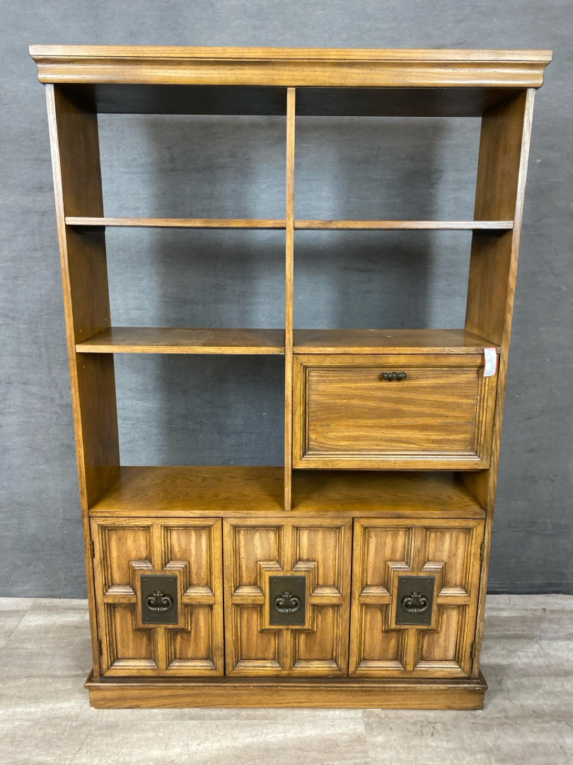 Book Case 48x15x72" Medium Wood 2 Section with Hinged Secretary & 3 Door Cabinet Base