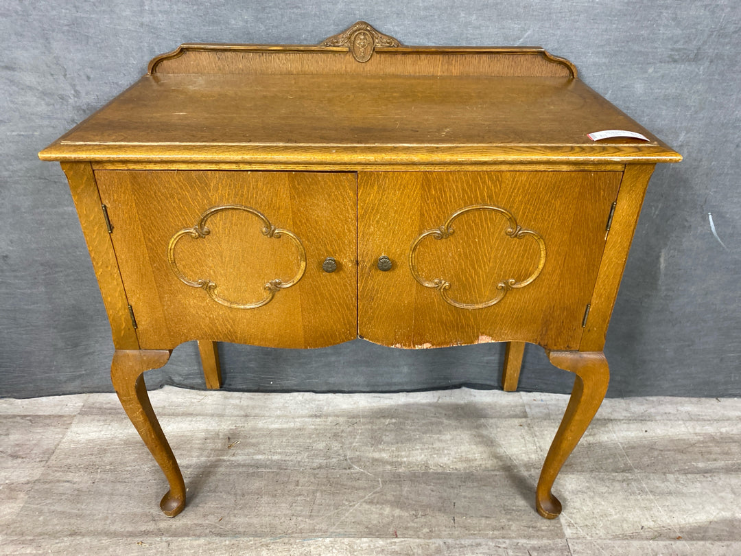 Buffet 36x18x38" Antique Medium Oak 2 Door with Leaf Scroll Accent on Queen Anne Legs