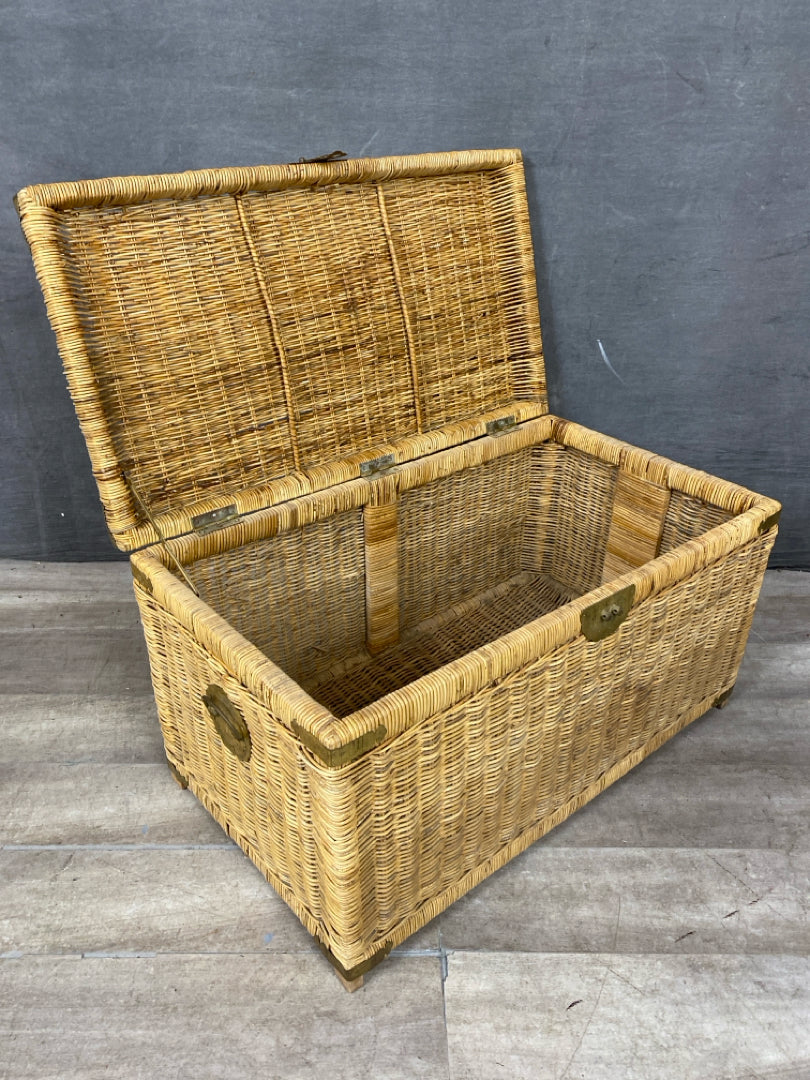 Chest 36x20x20" Woven Wicker/Rattan with Brass Accents & Glass Top Cover