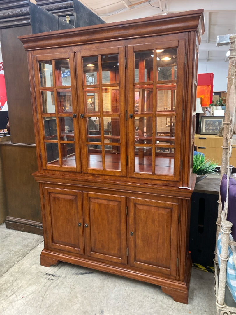 China Cabinet 54x17x80" Lighted Medium Wood 3 Glass Doors Top on 3 Drawer Base