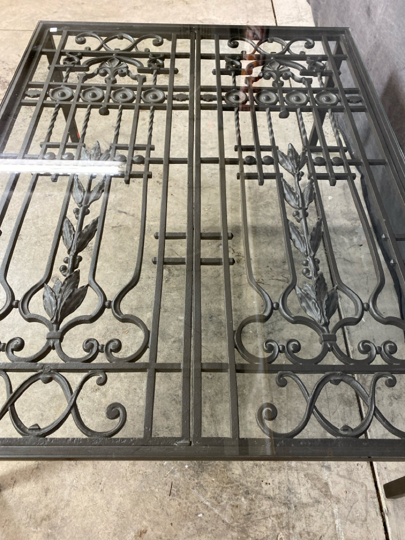 Coffee Table 42x33" Converted Iron Gate Panels Under Glass Top