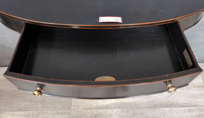 Theodore Alexander Console 48x17x36" Distressed Black Wood Bow Front 2 Tier 1 Drawer On Curved Legs