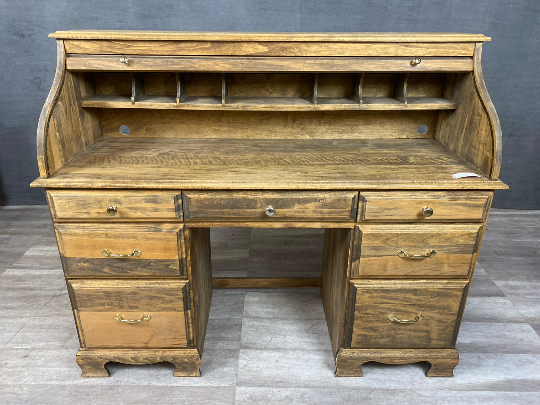 Desk 54x20x45" Roll Top 2 Tone Distressed Wood on 7 Drawer Base