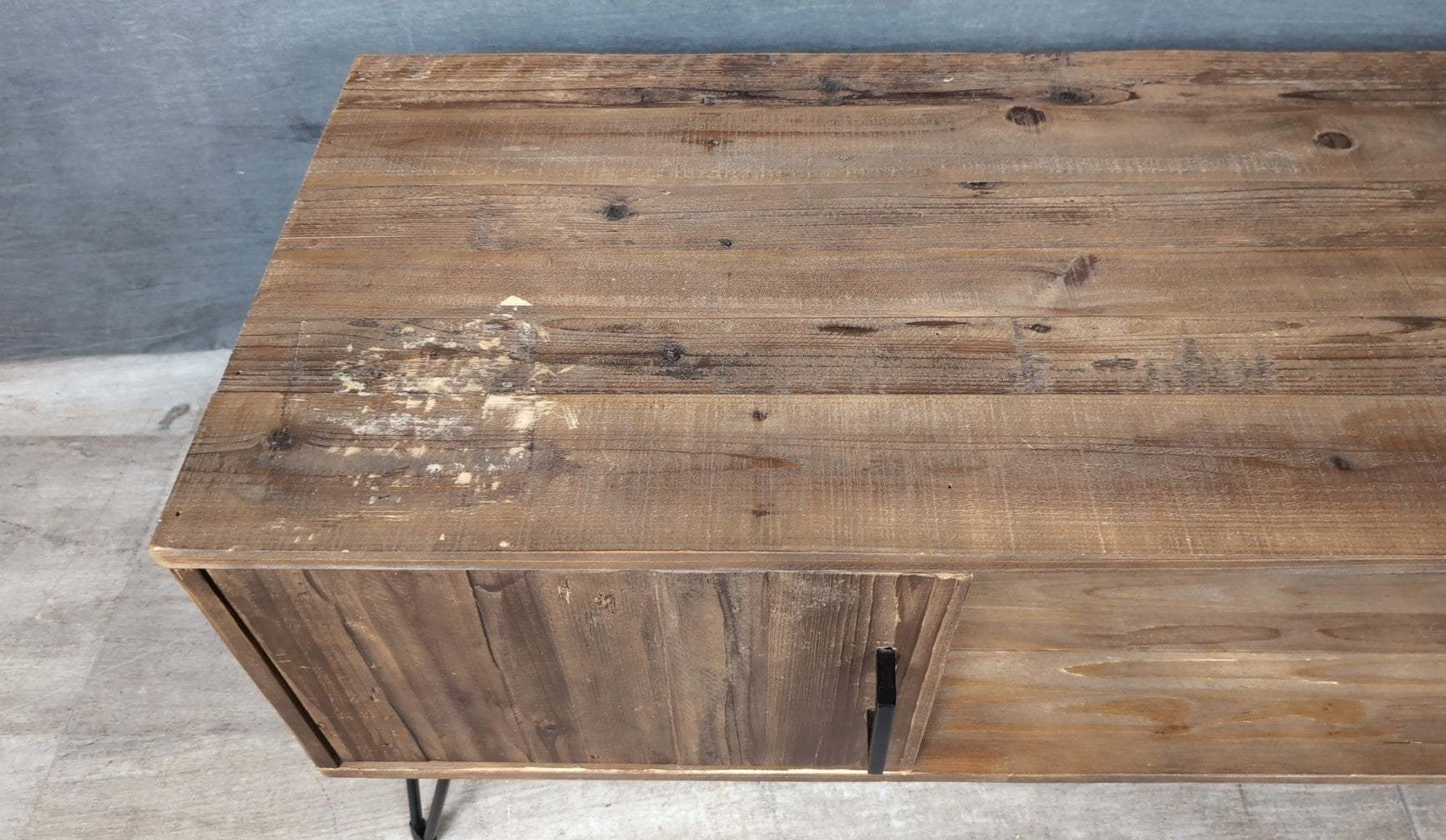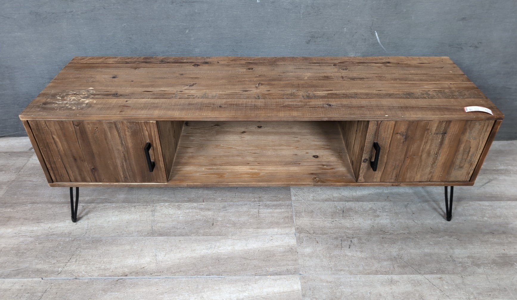 Entertainment Center 60" Wide Dark Wood 2 Doors with Cubby Center & Black Hairpin Legs