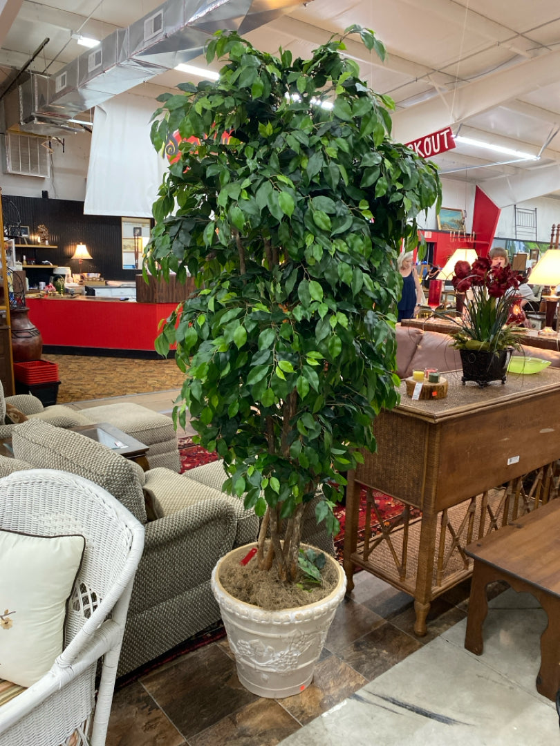 Floral Arrangement 90" Tall Ficus In White Pot with Embossed Grapes