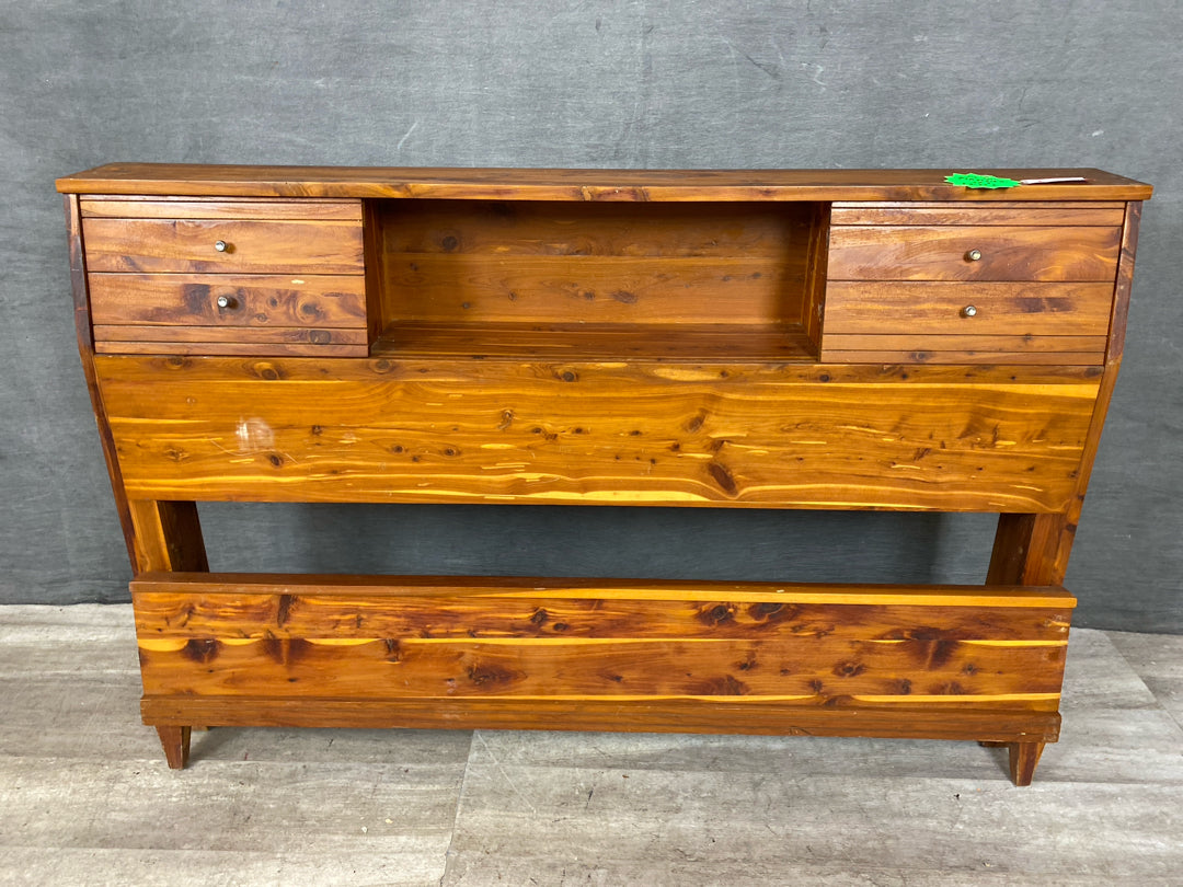 #Full Bed 2 Tone Cedar with Sliding Doors Compartment Style Headboard Includes Headboard & Footboard (No Rails Or Slats) - Matching Pieces Available, Save 10% By Purchasing Entire 4 Piece Set!