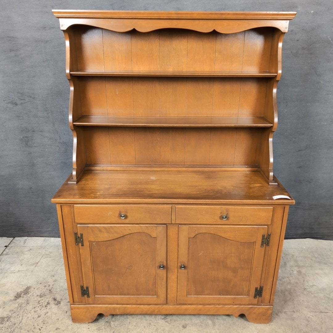 Hutch 46x18x65" Ethan Allen By Baumritter 2 Piece Medium Maple (?) 2 Tier Top On 2 Door 1 Drawer BAse