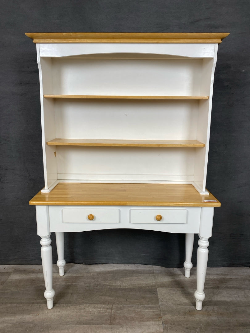 #Hutch 48x18x72" 2 Piece White Wood 2 Drawer with Light Wood Shelves