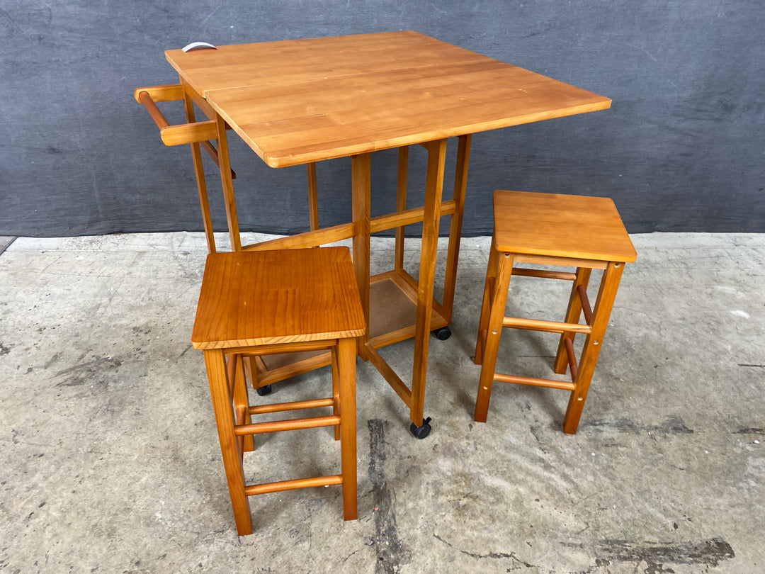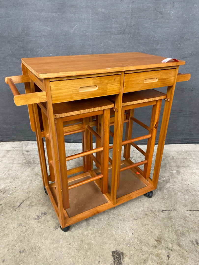 Island with 2 Store Under Stools Medium Wood Rolling with Drop Leaf & 2 Drawers