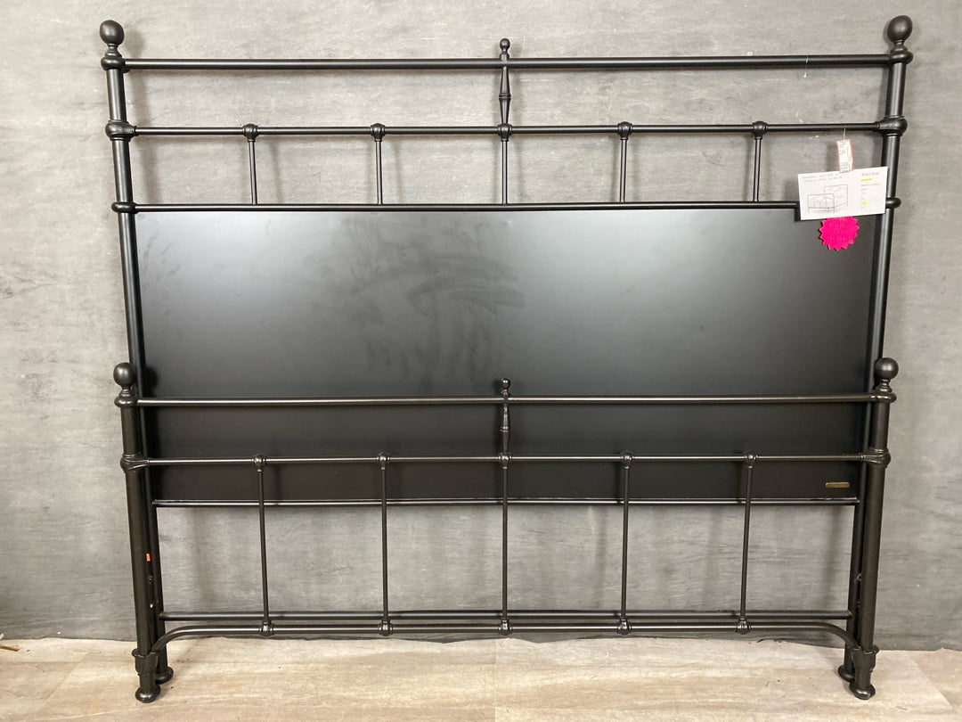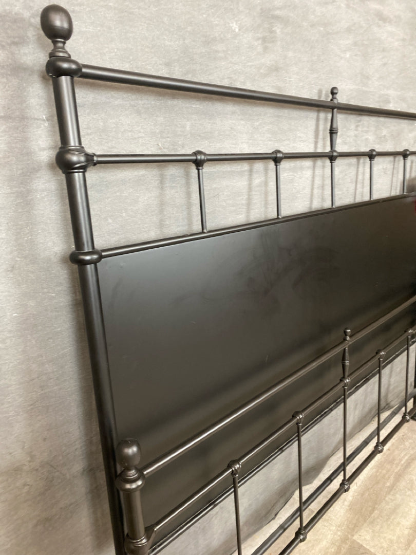King Bed Magnolia Home Black Metal Panel & Industrial Spindles Includes Headboard, Footboard, Rails & Slats