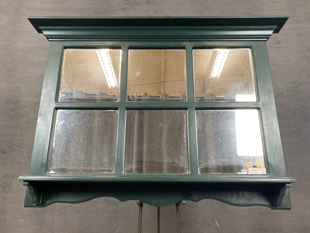 Mirror 49x34" Beveled 6 Pane Window in Green Frame with Shelf