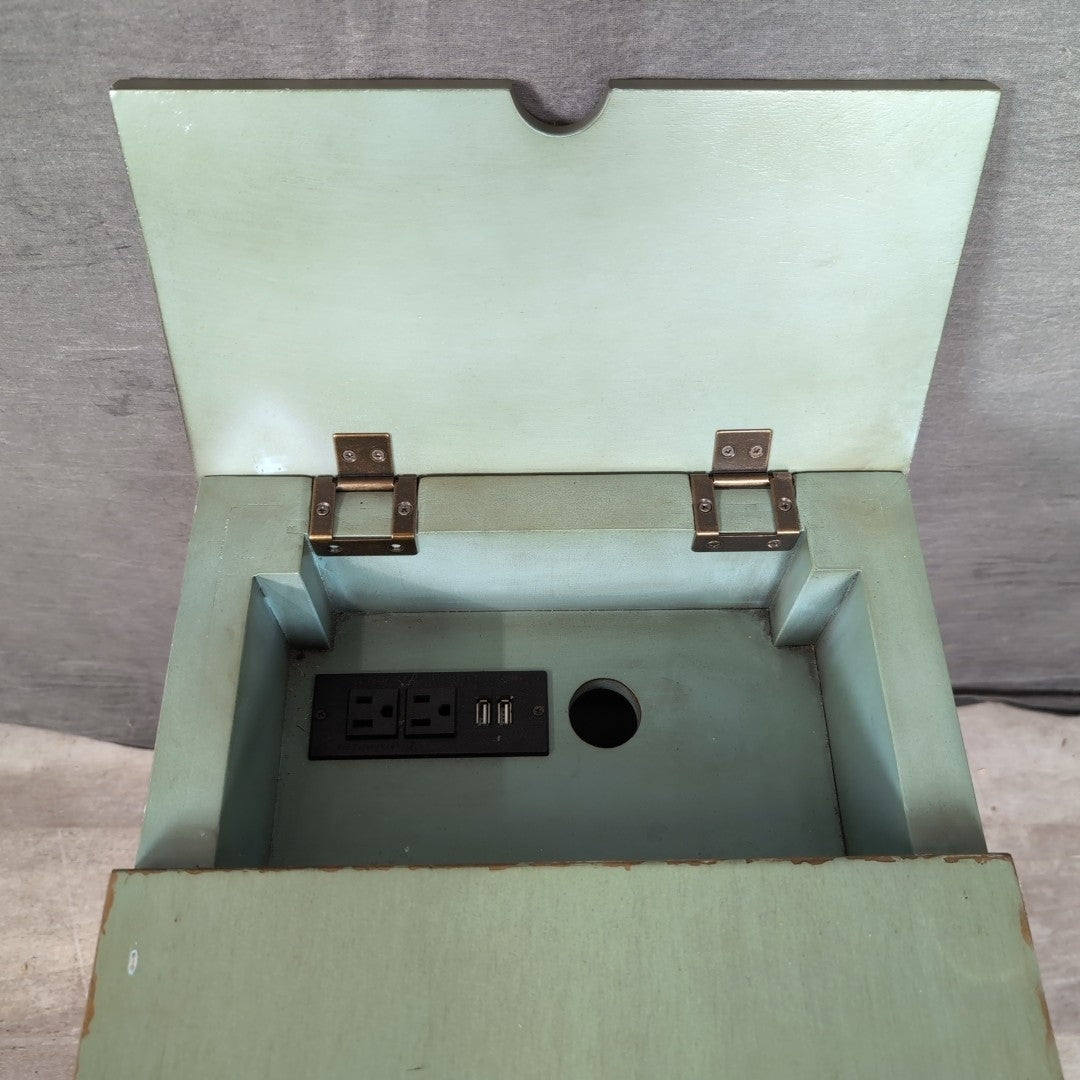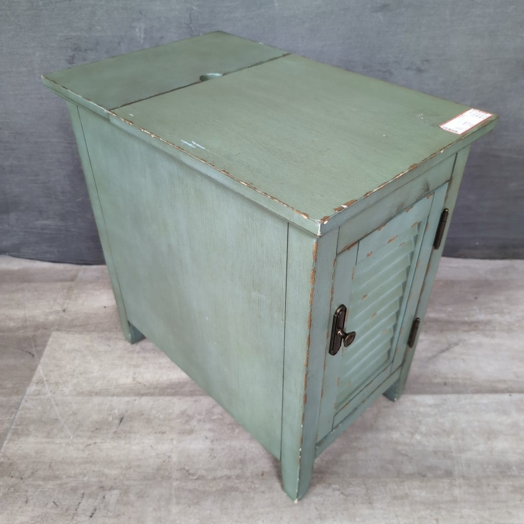 Broyhill Night Stand 14x22x24" Narrow Green Shabby Chic Louvered Door With Half Lift Top for Power & USB
