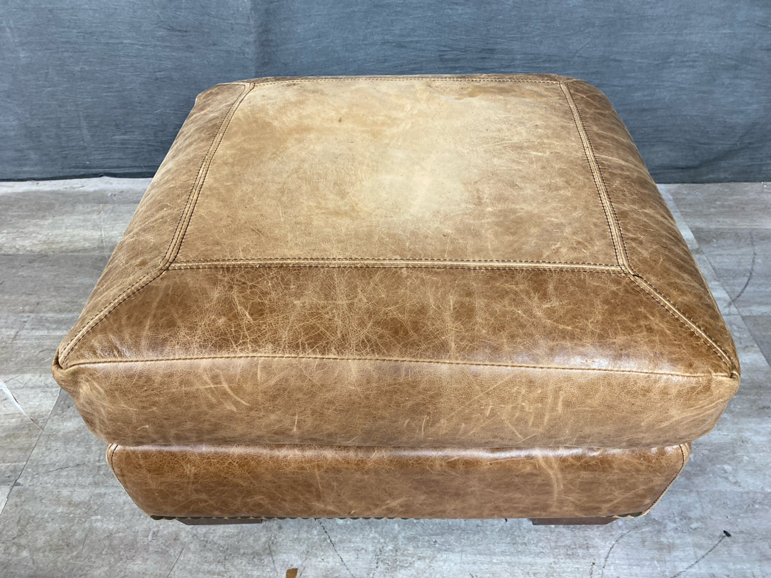Ottoman 24x26" Light Brown Leather with Nailhead Trim - Matching Overstuffed Chair Available
