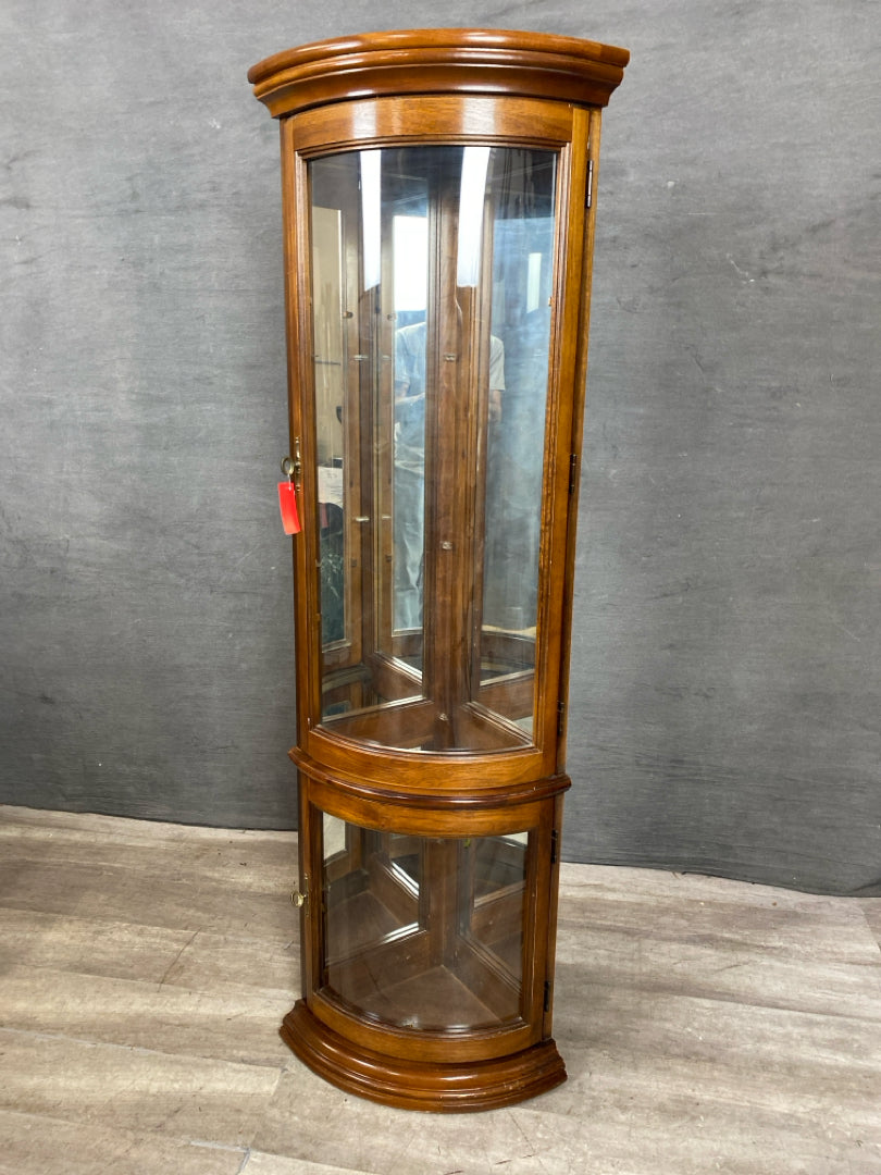 Pulaski Curio 69" Tall Corner Dark Wood Bow Front & Glass Lighted