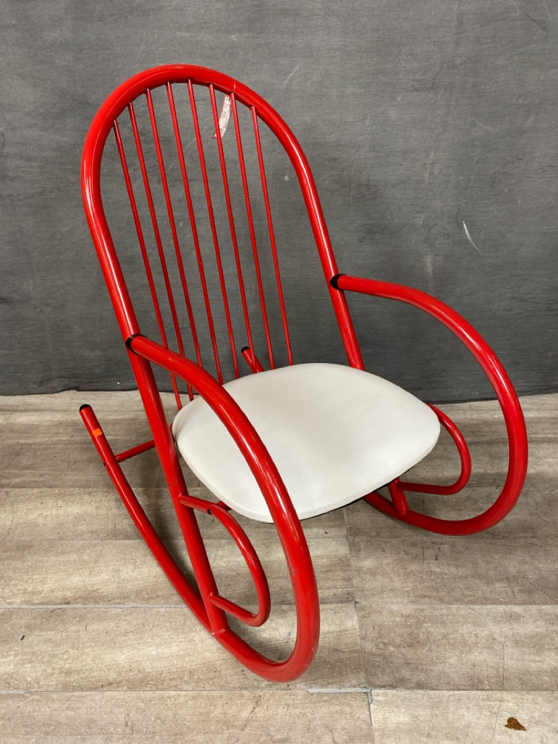 Rocker Post Modern Red Metal Tube Spindle Back with White Seat