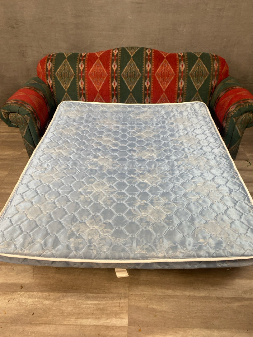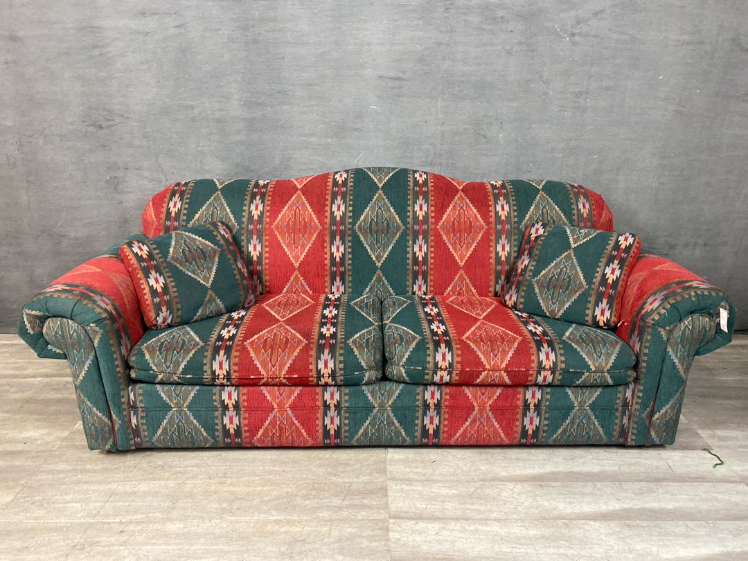 Sleeper Sofa Red & Green Native American Pattern With 2 Pillows