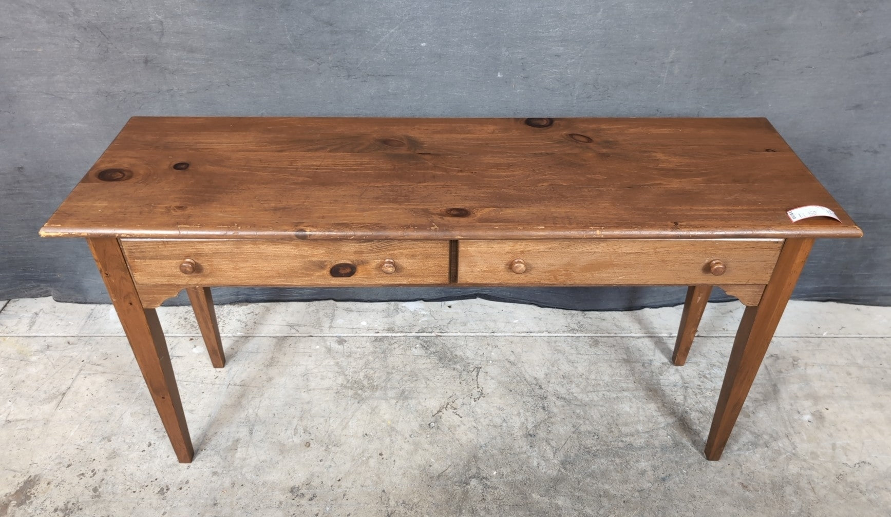 Sofa Table 52x16x27" Medium Pine 2 Drawer + Tapered Square Legs
