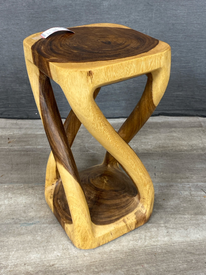 Stand 20" Tall Square 2 Tone Wood with Open Center Twisted Posts