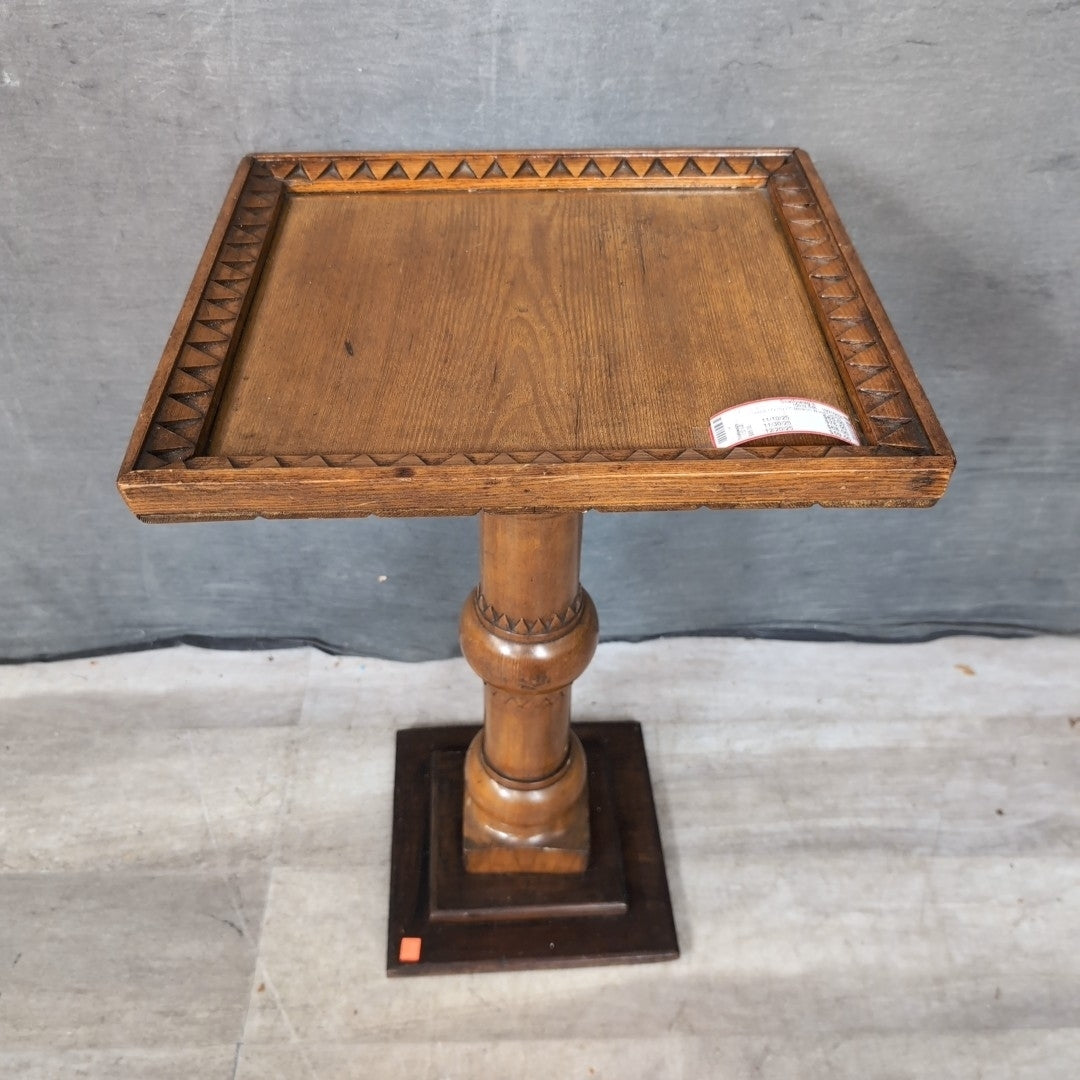 Stand 17x15x27" Medium Wood Carved Geo Rim On Turned Column Post Square Base