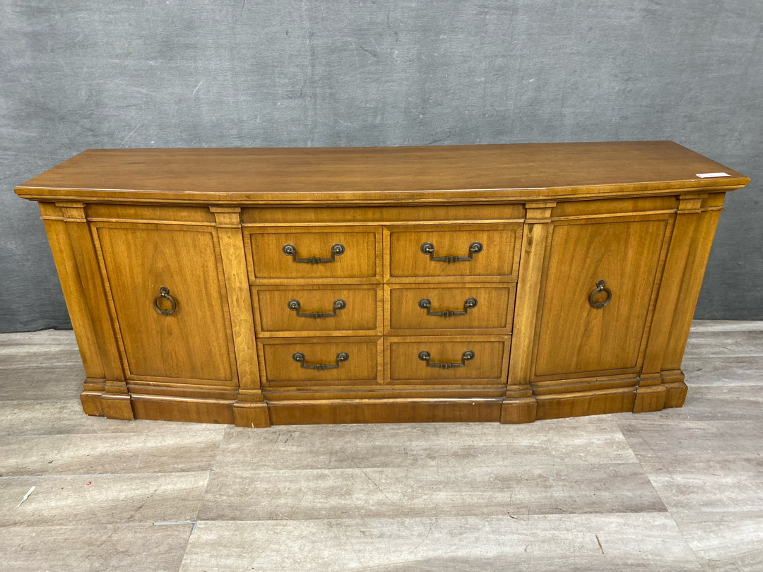 Thomasville Buffet 76x20x30" Retro Medium Wood 3 Drawer with 2 Door Angled Sides