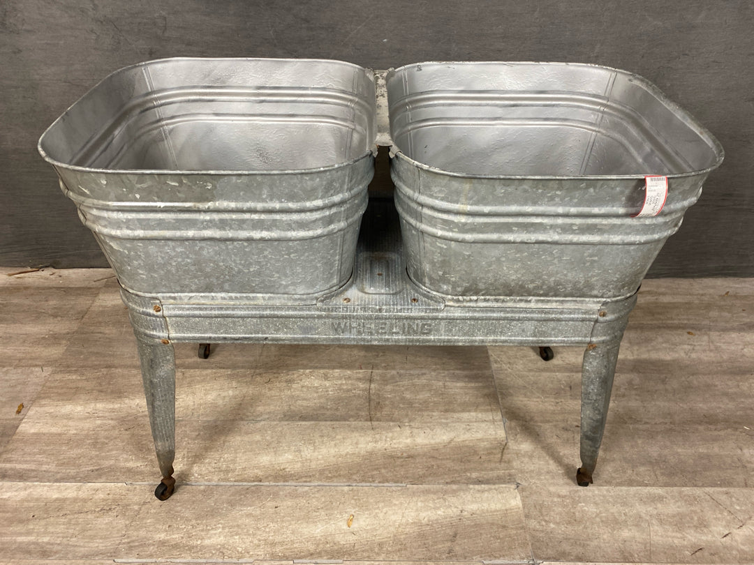 Tools 42x21x32" Antique Wheeling Double Basin Wash Tub Galvanized Metal On Rolling Stand