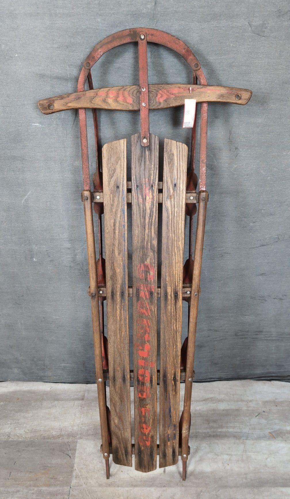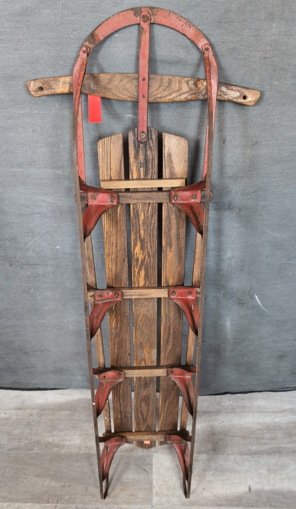 Toys Sleigh Wall Decor 60" Long Dark Oak Slats On Red Metal Runners