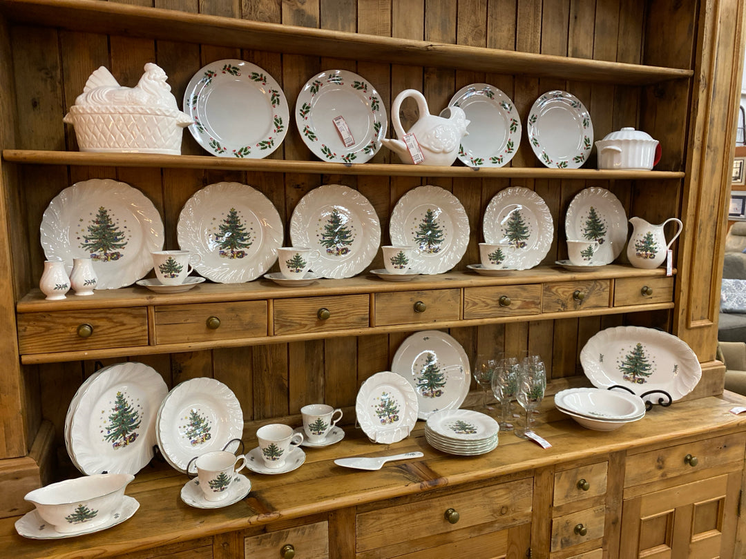Xmas Nikko Dishes 8 Place Settings with 4 Pieces Per Setting + 12 Serving. White with Christmas Tree (44 Total Pieces)