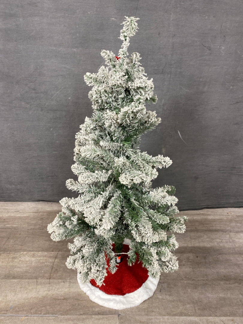 Xmas 4' Tree Pre Lit Flocked/Snowy with Red Skirt & Box